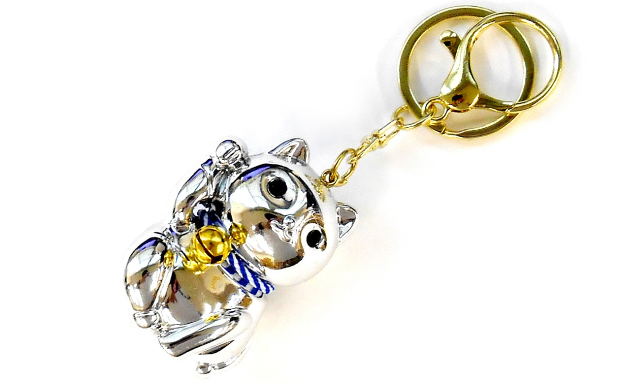 メタリック招き猫キーホルダー(シルバー)